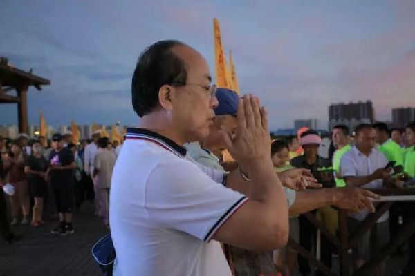 天堂墓園全體員工在馬鑫董事長帶領(lǐng)下無償為這次大型公益活動捐送7000盞河燈…