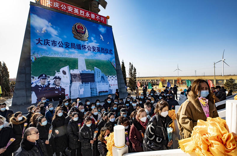 自3月15日起,為深切緬懷保衛(wèi)大慶經濟發(fā)展、社會和諧穩(wěn)定、人民安居樂業(yè)而英勇犧牲的公安英烈,大慶市組織開展了緬懷公安先烈、致敬英雄活動,讓胡路區(qū)政府、薩爾圖政府、紅崗區(qū)政府、公安、民政、社區(qū)、志愿團體、民間團體等單位和團體500余人次參加公祭活動,一束鮮花、一個鞠躬、幾許默哀、良久靜思,過程簡潔卻不簡單,儀式肅穆而不敷衍,情感飽滿而不輕慢,寄托對公安英烈的無限哀思,追憶他們的豐功偉績,學習他們的崇高精神。參與公祭的社區(qū)工作人員說:“他們是為保護大慶人民英勇犧牲的,我們無論遇到什么天氣都應來掃墓祭奠,以此敬仰英烈?!? 黑龍江省建筑業(yè)協(xié)會副會長李鵬說:“感謝大慶公安英烈沒有他們的付出就沒有我們今天的美好生活,是他們用鮮血保衛(wèi)著我們的城市發(fā)展,我們應時刻傳承并發(fā)揚先烈精神......”