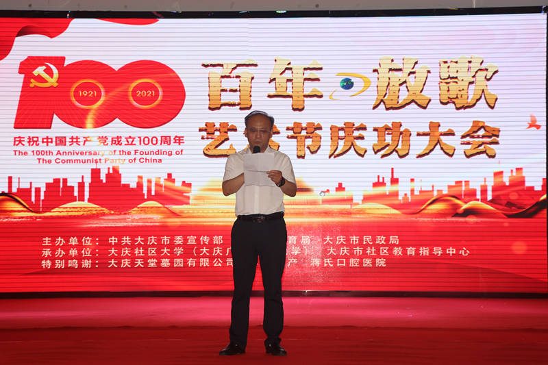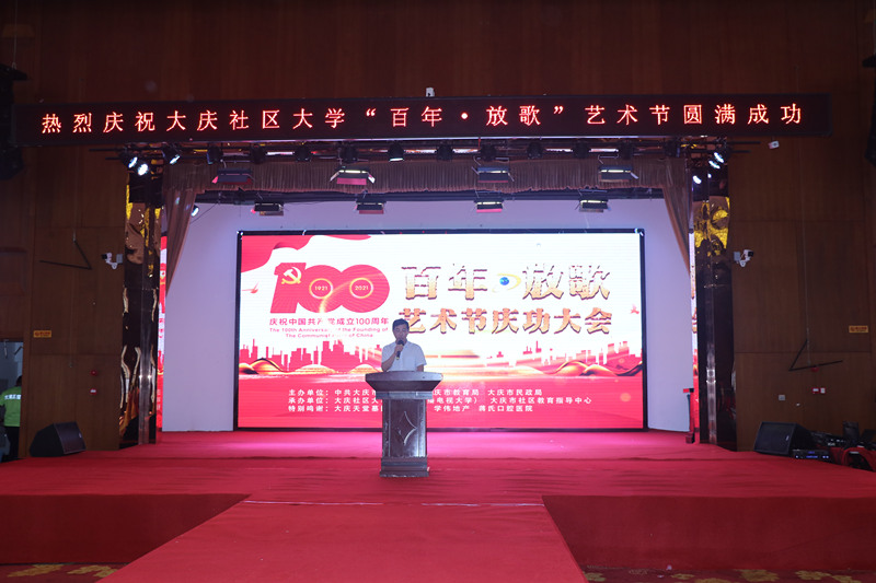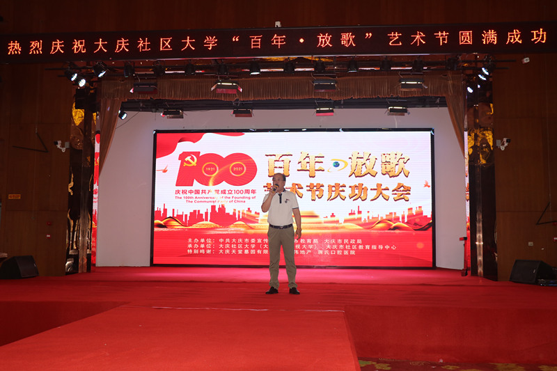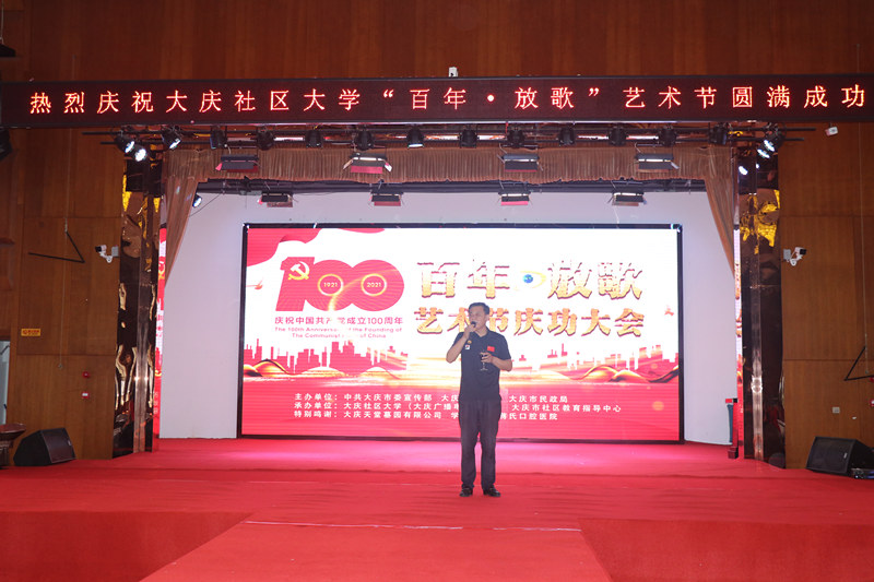 為慶祝建黨100周年,大慶社區(qū)大學(xué)舉辦的百年放歌藝術(shù)節(jié)活動,今天上午在大慶黑漁湖藝術(shù)邨落下帷幕。來自全市各藝術(shù)團(tuán)長,演員以及各路群體300余人參加了這次活動。演出活動前,全體起立,手持國旗,全體參會人員放聲歌唱《沒有共產(chǎn)黨就沒有新中國》。大慶社區(qū)大學(xué)校長丁文彬,黨委書記姜樹林,副校長孟偉軍,主任孫銘發(fā)表了熱情洋溢講話,并為今后如何辦一個(gè)高質(zhì)量大慶社區(qū)大學(xué),更好地為大慶人民服務(wù),為老年人創(chuàng)造幸福晚年提出了很多很好思路和方向。大會表揚(yáng)了總導(dǎo)演錢峰等人為這場活動付出的辛苦。